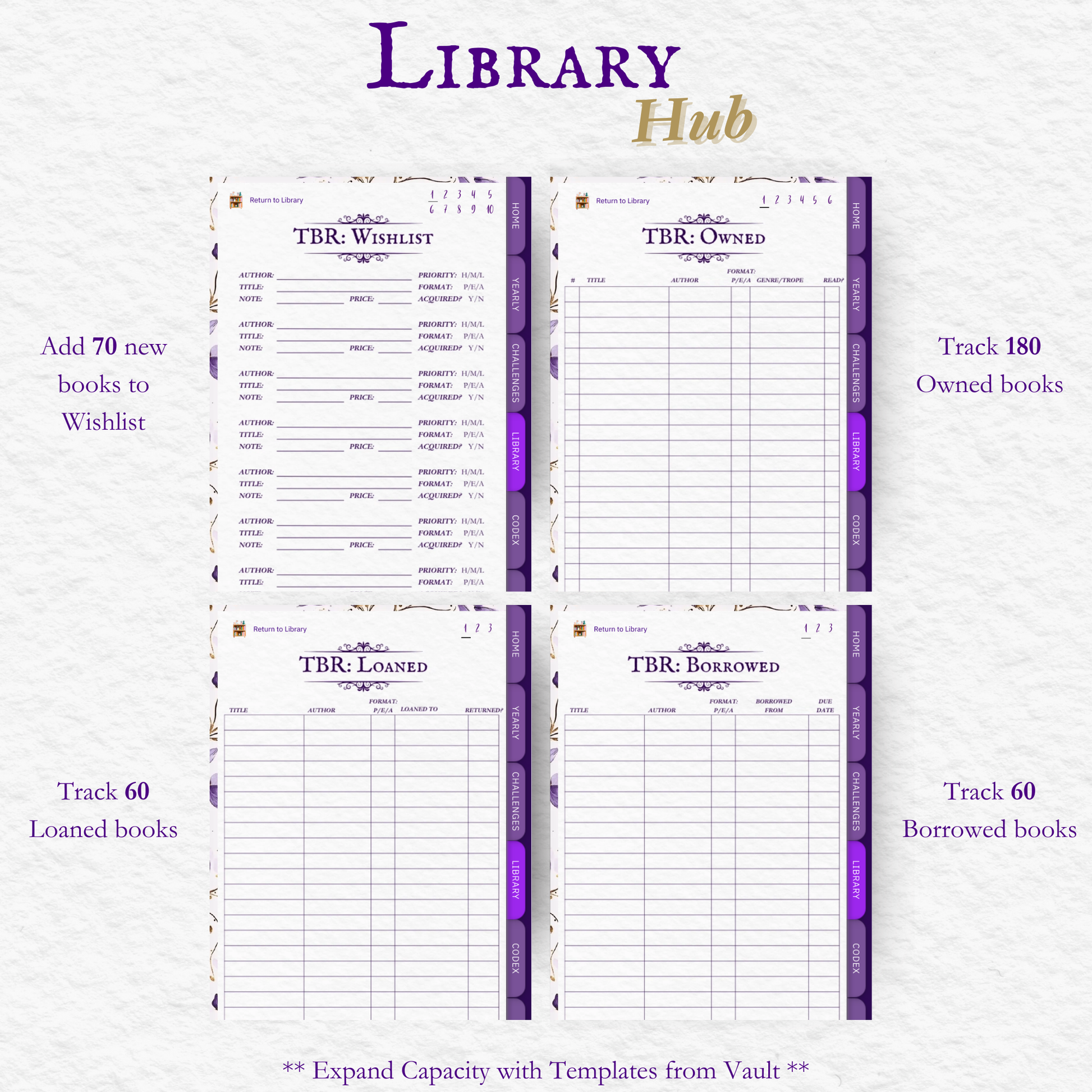 Annual Goals & Logs: TBR, To Buy, To Borrow, reading goals, challenges, book budget, bookshelves, book covers, and more